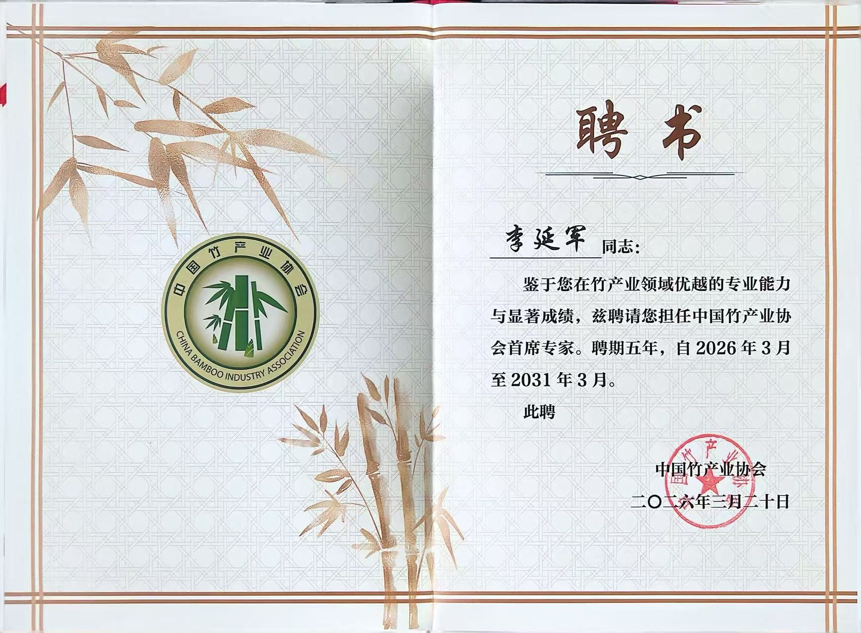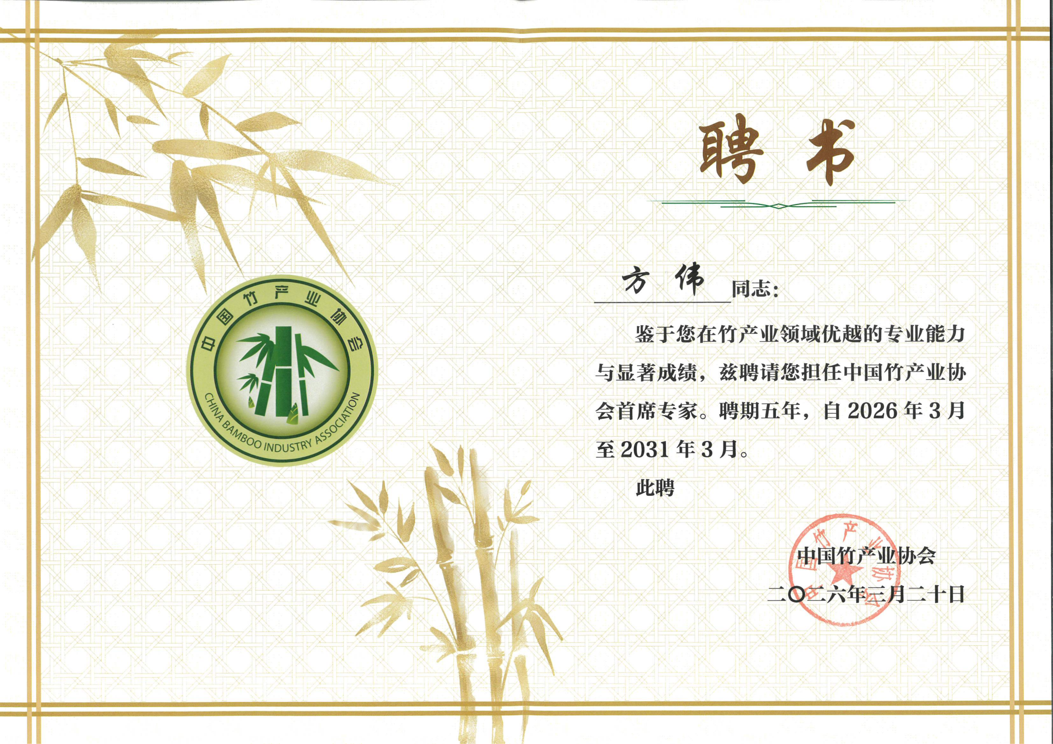 方伟教授、李延军教授在中国竹产业协会第六届会员代表大会暨第六届一次理事会上被聘为中国竹产业协会首席专家。