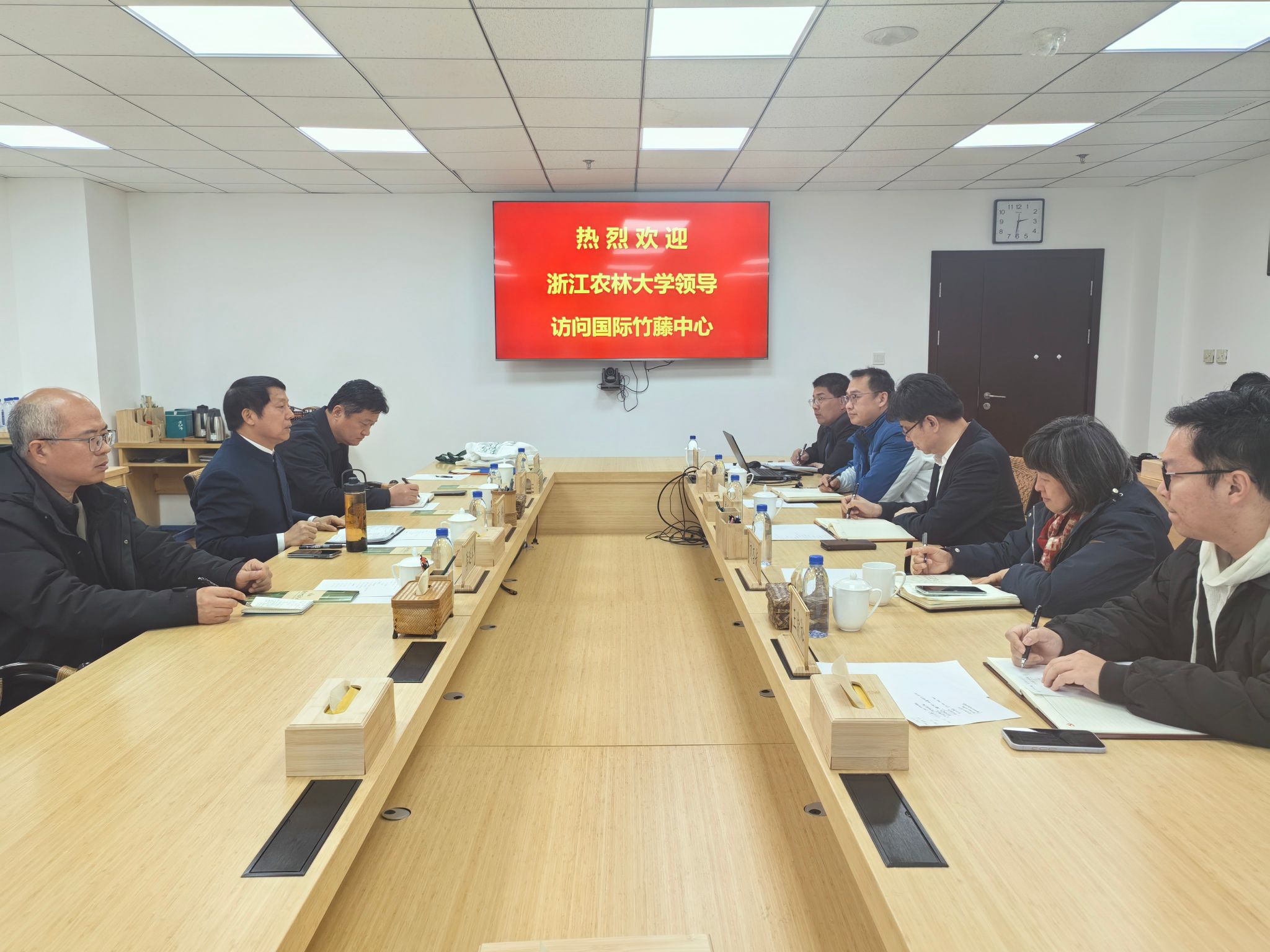 在国际竹藤中心主任、党委副书记覃道春等领导座谈交流时,双方在践行“三三”竹产业发展战略、联合培养人才、加强学术交流和科技创新平台建设、加强国际化交流合作等方面达成了合作意向,表示将尽快签订战略合作协议,围绕国家发展战略,共同促进竹产业的高质量发展。