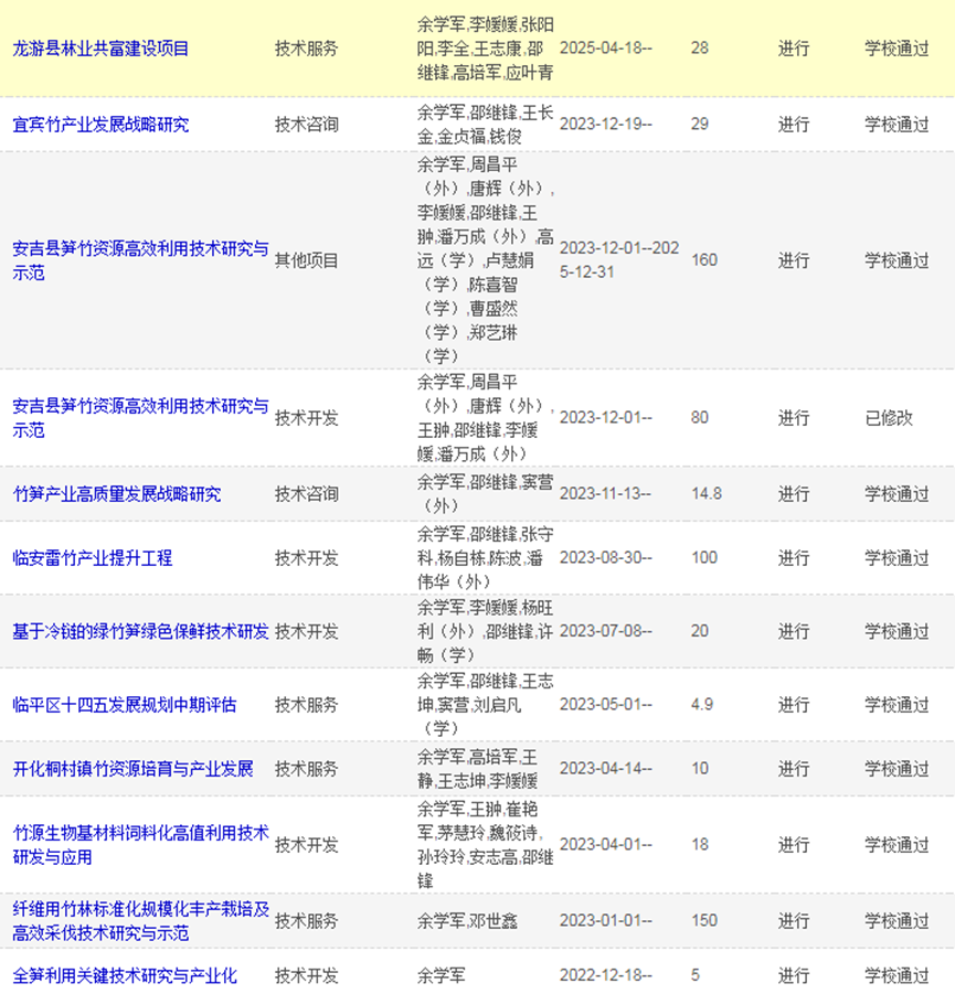 3.主持“夏秋季笋用竹高效经营与综合开发关键技术集成示范”国家星火重点项目,筛选出3种夏秋季笋用竹并推广1.2万亩,经济效益显著。